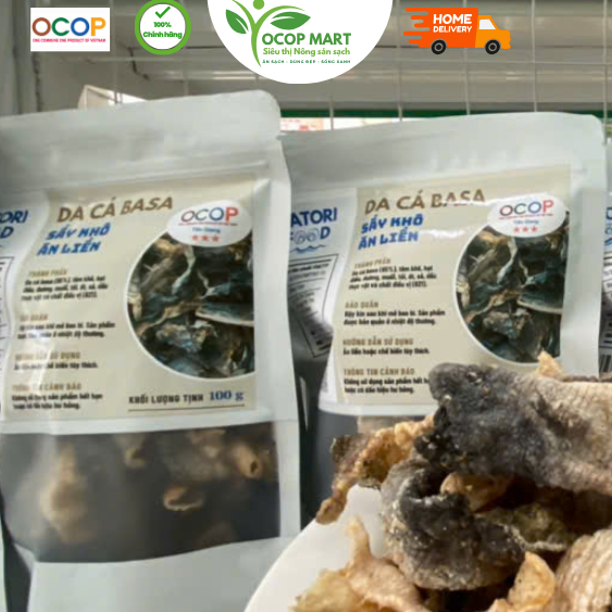 👉 Thành phần: Da cá basa (95%), tôm khô, hạt điều, đường, muối, tỏi, ớt, sả, dầu thực vật