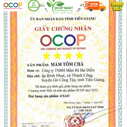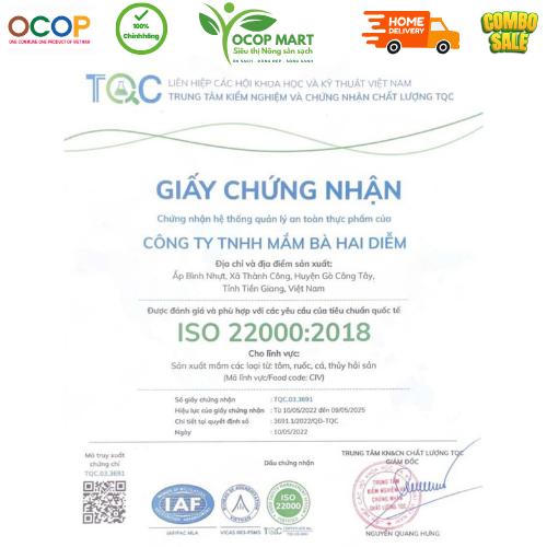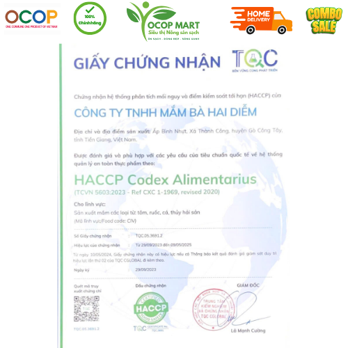 👉 Sản phẩm đạt tiêu chuẩn chất lượng: OCOP 4 sao, HACCP, ISO 22000